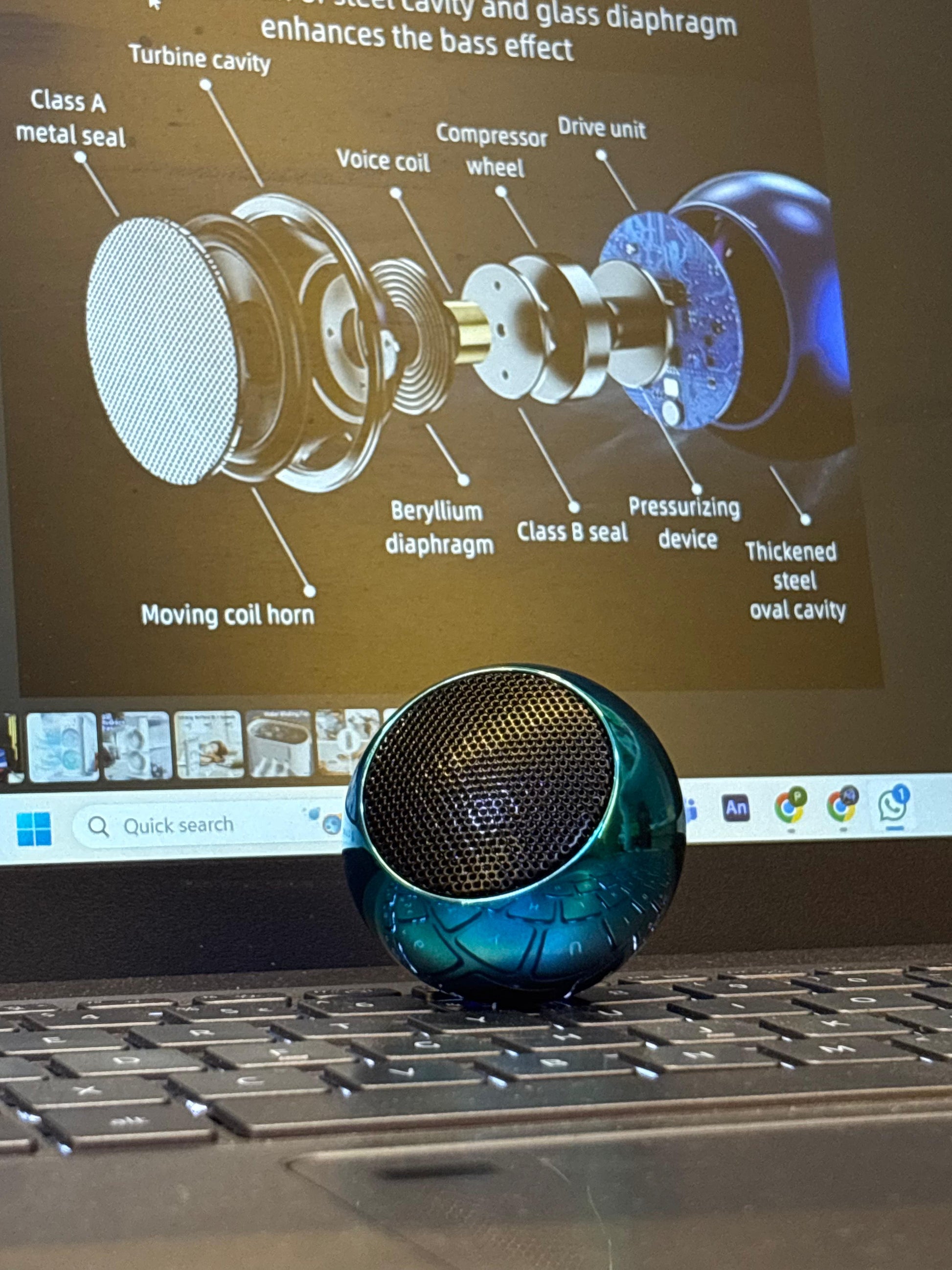 Bring music everywhere with this powerful Mini Bluetooth Speaker. Designed with a sleek metallic finish and 4D stereo surround sound, this compact speaker delivers crystal-clear audio, making it perfect for your desk, trips, or even gifting.